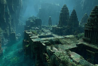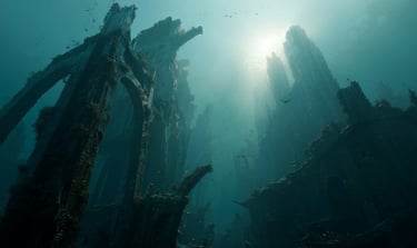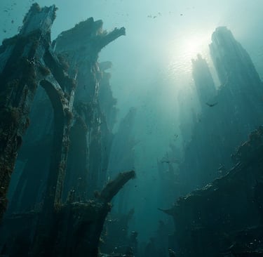 Images graciously provided by: Benagil - Shutterstock by Rad Raddu, "Scaled Sandscrub" by EnsedaKimri; , "The Sea Gave Back in Plenty" by EnsedaKimri, "Underwater City" by EquinoxEC64, The Kylemore Abbey Estate by Jess Friedman, Nusa Penida by Reeflex Divers, Manzanillo Beach - Costa Rica by Kryssia Campos, "Amazon Jungle Yasuni Ecuador by Aditi Partha, Nusa Penida Kelp Farm by PharmerSea, "Stalked Kelp 01" by Eiko Jones, "Downport Mireton" by EnsedaKimri, "Built to Last" by EnsedaKimri, "Violets at Rootbridge" by EnsedaKimri, "The Kemmins Commons Aftermath" by EnsedaKimri, "Port Rotroot" by EnsedaKimri, "Mystic Pond" by Blister17, "Underneath Waterworld" by SvettheFallen, "The Earth Got Hungry and Stopped for a Bite" by EnsedaKimri, Untiled Image of Connemara National Park by Residence Hotel Galway; " The Ruins of Mooncrest Metropolis"by EnsedaKimri, Irrigated Rice Terraces in Bali Indonesia by Glen Allison, "Cross Your Heart and Hope Not to Die" by EnsedaKimri, "Abyssal Abominations" by EnsedaKimri, "Crowley Lake Stone Columns" by LiveThatAdventure, "Church No More" by Tomahawk29, "Lake City" by SvettheFallen, Lumajang Viewpoint of Tumpak Sewu by Jess Matoaka, "DnD Underground City" by Bergionstyle, unknown (underwater wreckage), Co Thatch Binh Thuan by Vietnam Travel, unknown (flooded stone path), "WitchwinterConcept - Bayou" by Magnus on DeviantArt, "The Fields at Night" by Zalmunna, "Jungle 04" by HZ-Designs, "A Ray of Sublime Rave" by EnsedaKimri, "The Depths of Aspiration" by EnsedaKimri, "Sunlit Ruins" by VRStylish on DeviantArt, "The Lockbox of Renstar" by EnsedaKimri, "Banewulfe Hollow, Drokkanshire" by EnsedaKimri, the "Artifacts of Tokalchec" is a collage of five images created by EnsedaKimri and copyrighted by S.D. Nightshade Publications in 2025, "Fireworks in Palms" by EnsedaKimri, the Lion's Castle - Kassel Germany by Explorow, Banana Beach Principe by Lonely Planet, unknown tropical sunset. Background: "Reef of Jewels" by EnsedaKimri.